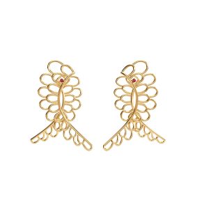 18 kt yellow gold earrings with 2 rubies 0.06 ct