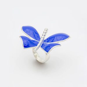 Six wings 925 silver ring big Butterfly with blue and light blue enamel
