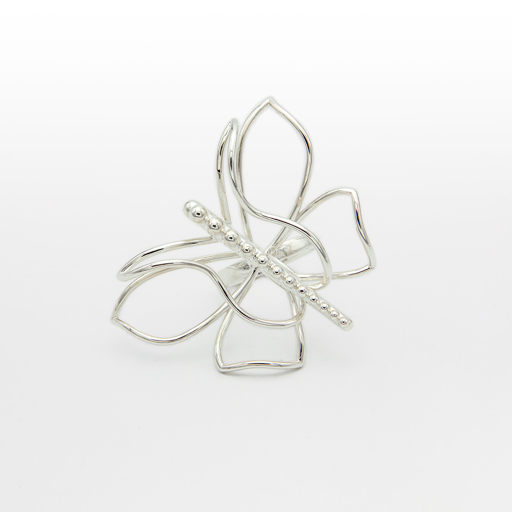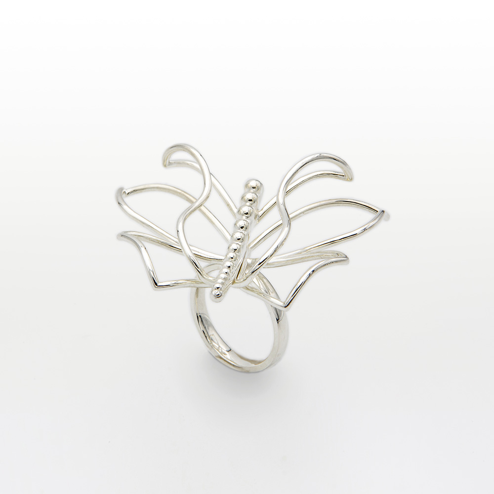 Four wings 925 silver necklace big Butterfly with floral miniature enamel