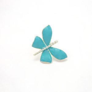 Four wings 925 silver ring little Butterfly with red coral enamel