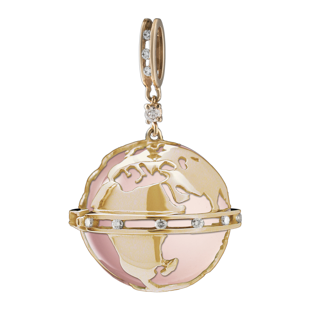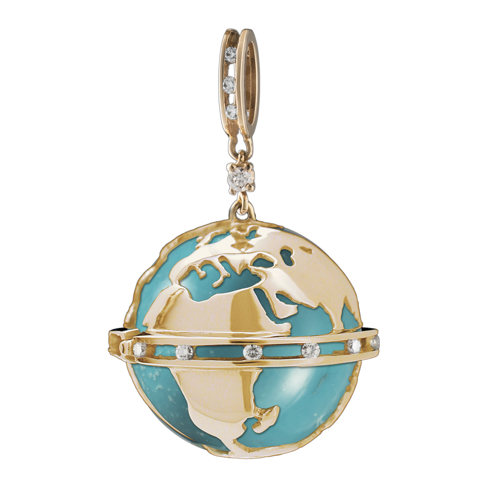 IL MAPPAMONDO RACCHIUDE, CON UNA SUA RICCHEZZA TECNICA INNOVATIVA, LA POSSIBILITA’ DI APRIRSI E DI CAMBIARE. FINEMENTE DEFINITI, I CONTINENTI SONO REALIZZATI IN ORO. UN MECCANISMO LUNGO LA LINEA DELL’EQUATORE APRE E CHIUDE IL GLOBO DELLE TERRE EMERSE, PER ALTERNARE LE SFERE INTERNE INTERCAMBIABILI CHE DANNO IL COLORE AGLI OCEANI