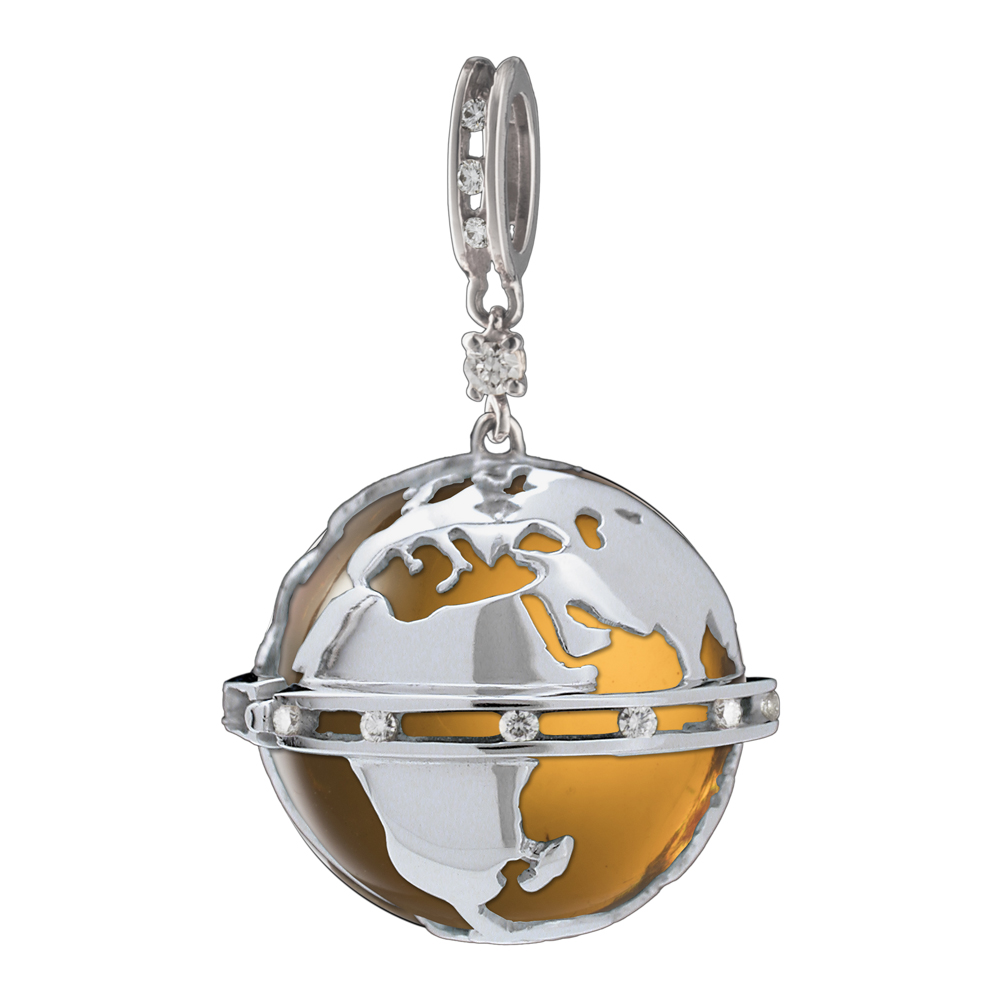 Oro bianco con 20 Diamanti ct. 0,38 e sfera di Ambra.