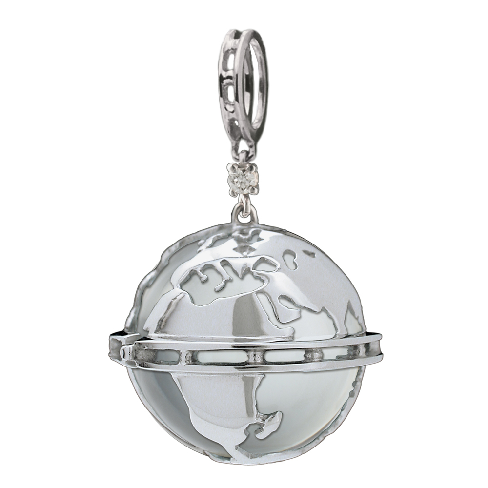 Oro giallo con 1 Diamante ct. 0,07 e sfera di Cristallo di Rocca.