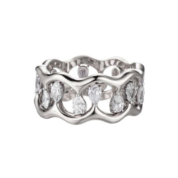 Anelli laterali in oro bianco 18 kt e 16 diamani a goccia ct 1,40